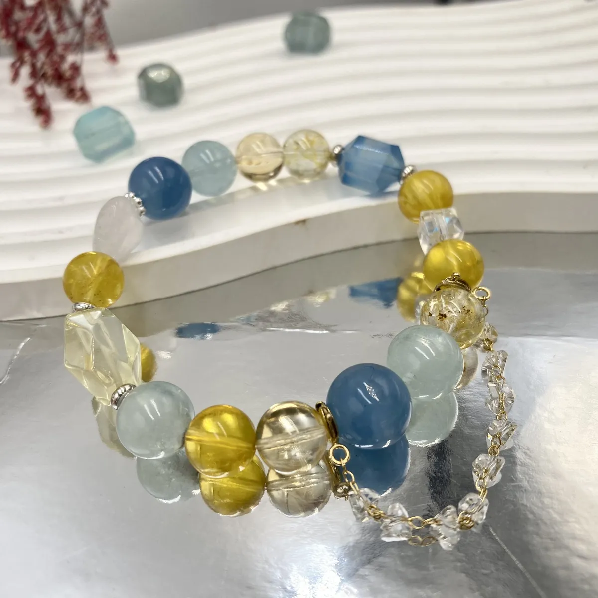 那一顆海藍寶,是心底的深海;那一抹黃水晶,是走過黃昏的勇氣。